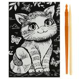 С помощью данного набора юный художник сможет создать эффектную серебристую картину на чёрном фоне. Контур рисунка уже нанесён на основу, остаётся только процарапать изображение специальным штихелем. Можно не повторять каждую черточку, главное - соблюдать направление штриха! Готовая поделка станет отличным вариантом для подарка близким или для украшения интерьера комнаты.