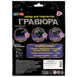 С помощью данного набора юный художник сможет создать эффектную серебристую картину на чёрном фоне. Контур рисунка уже нанесён на основу, остаётся только процарапать изображение специальным штихелем. Можно не повторять каждую черточку, главное - соблюдать направление штриха! Готовая поделка станет отличным вариантом для подарка близким или для украшения интерьера комнаты.