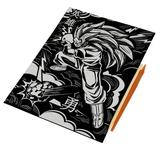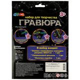 С помощью данного набора юный художник сможет создать эффектную разноцветную картину на чёрном фоне. Контур рисунка уже нанесён на основу, остаётся только процарапать изображение специальным штихелем. Можно не повторять каждую черточку, главное - соблюдать направление штриха! Готовая поделка станет отличным вариантом для подарка близким или для украшения интерьера комнаты.