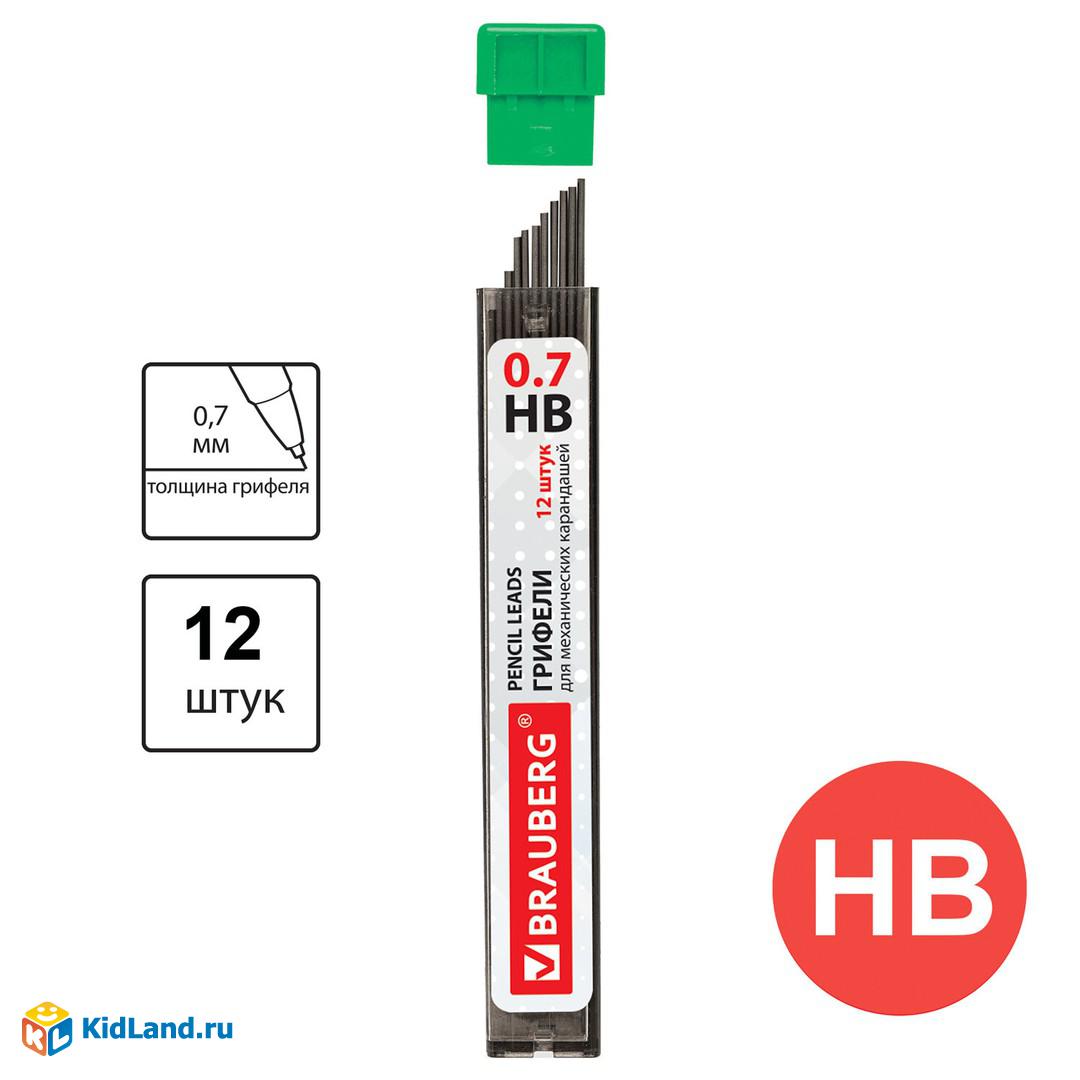 Грифели запасные BRAUBERG, КОМПЛЕКТ 12 шт, "Hi-Polymer", HB, 0,7 мм, 180446