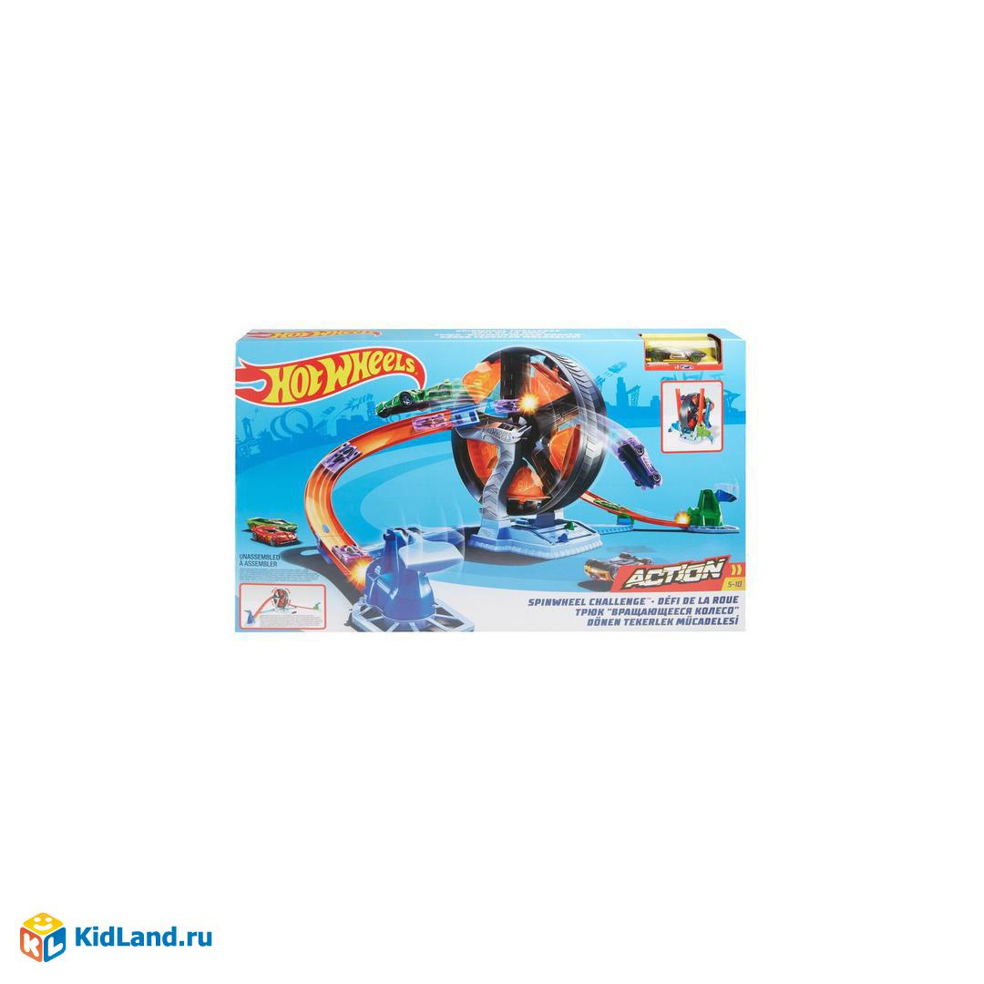 В этом захватывающем игровом наборе от Hot Wheels есть все, что нужно детям для скоростных головокружительных гонок! В наборе вы найдете трассу с вращающимся колесом, 2 пусковые установки и 2 машинки, с которыми ваш малыш может устроить одиночные гонки или бросить вызов своим друзьям. Запустите машинку по трассе через вращающееся колесо, ударьте по щитку и получите очки. Победителем станет гонщик, который набрал наибольшее число очков по итогам всех заездов.