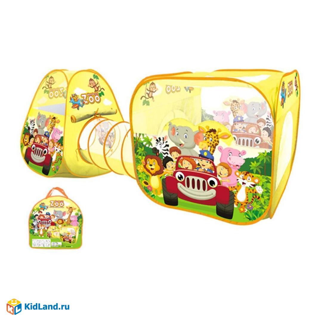 Игровой комплекс состоит из двух палаток, соединенных между собой туннелем. Все элементы комплекса легко складываются и раскладываются, а в сложенном виде не занимают много места. Их можно хранить в специальной сумочке, которая прилагается в комплекте поставки.