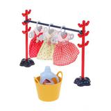 В комплекте: стиральная машинка размером (ДхШхВ) 21х11х23 см, а также аксессуары (2 корзины для белья, 2 моющих средства (муляжи), напольная вешалка, 3 вешалки-плечики, 3 платья, наклейки).