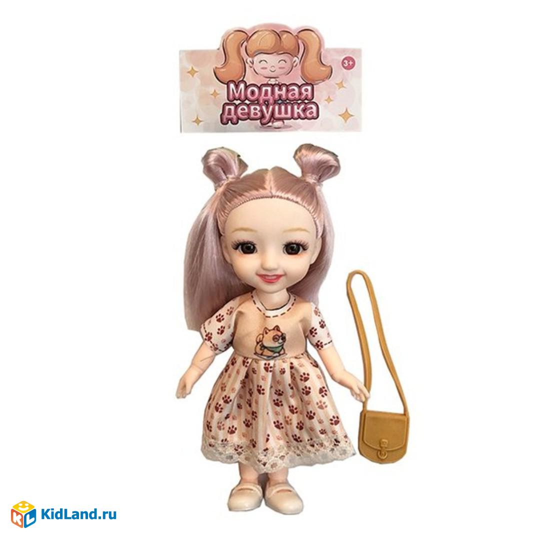 Девочка любит играть в куклы? Тогда ей точно приглянется игровой набор «Модница»! Прекрасная куколка представлена в стильном платьице. У неё очаровательное личико и большие выразительные глазки, шелковистые волосы жемчужно-розового цвета. В комплекте с куклой прилагается сумочка.
