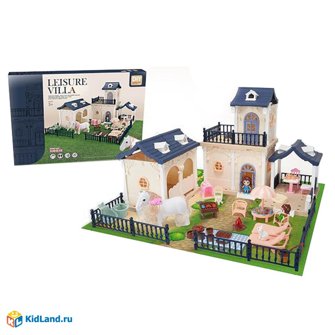 Игровой набор «Семейная усадьба» станет воплощением детской мечты! В комплект входит 148 деталей и 34 аксессуара, с помощью которых можно построить роскошный кукольный домик с конюшней, мансардой, беседкой, зелёной лужайкой и забором, обставить его мебелью и поселить фигурки человечков и животных. Набор также включает иллюстрированную инструкцию по сборке игрушечного дома.