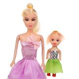 Высота взрослой куклы составляет 29 см, высота девочки: 10 см. Изготовлено из пластмассы с элементами из текстильных материалов. Рекомендованный возраст: 3 года +