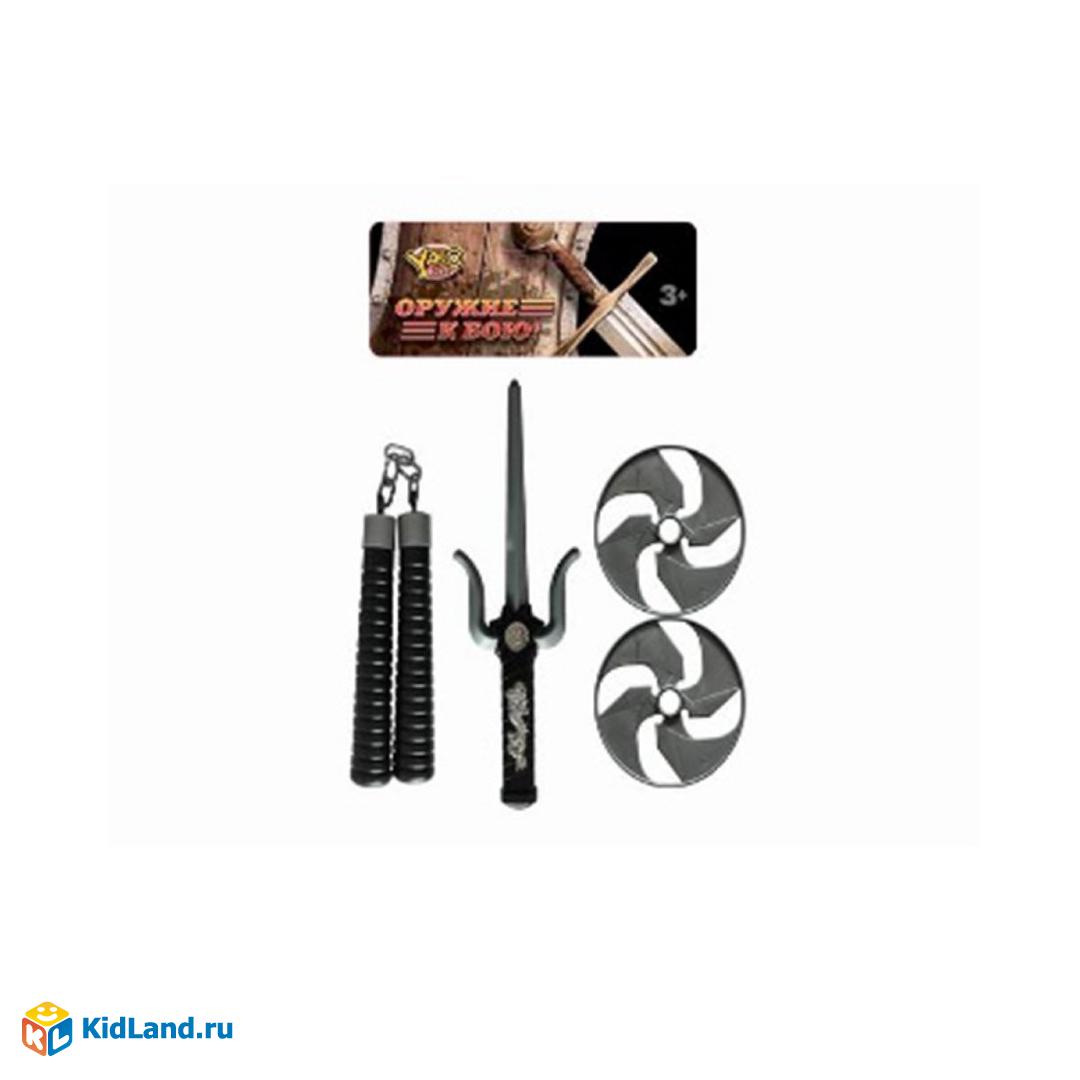 Игровой набор «Ниндзя» — великолепный подарок для маленького героя. Во время игры ребёнок сможет проявить максимум фантазии и почувствовать себя храбрым и отважным воином! В комплект входит 4 игрушечных предмета: 1 нунчаки, 2 сюрикена и 1 кинжал. С таким мощным вооружением юному ниндзя не страшны никакие враги!