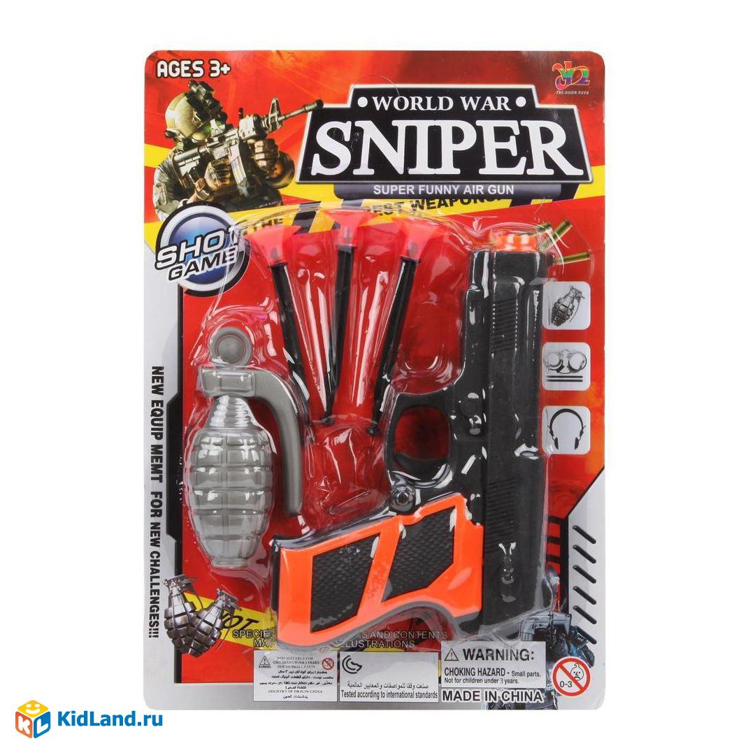 Игр.набор Военный, пистолет, стрелы с присосками 3шт., граната, блистер