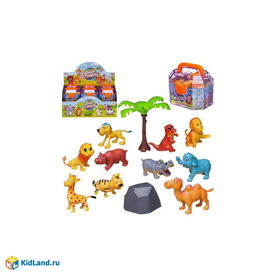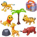Комплектность: фигурки мультяшных диких животных – 5 шт., пальма - 1шт., горка ландшафтная- 1шт., чемоданчик – 1шт., ключик - 2 шт.