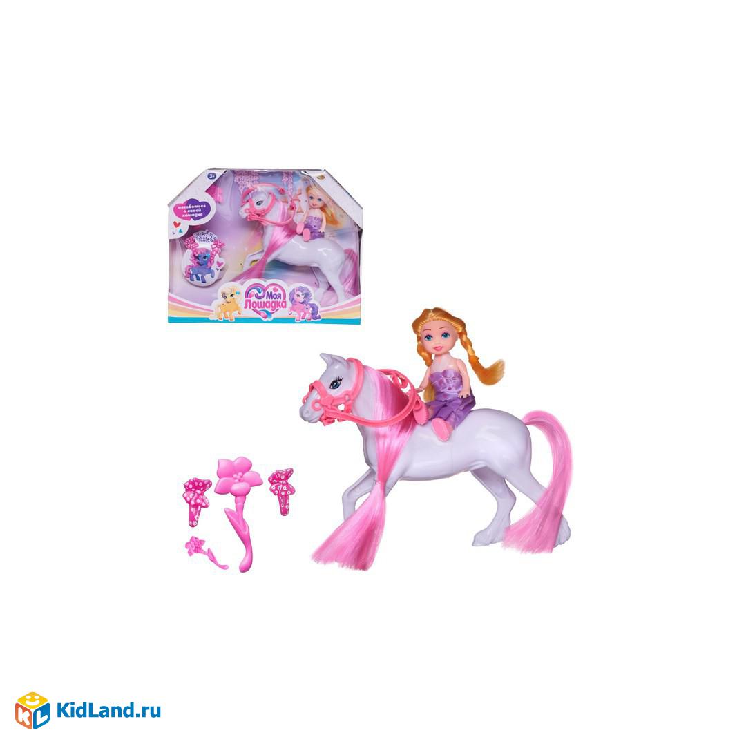 Комплектность: кукла – 1 шт., лошадка – 1 шт., цветок-расческа – 1 шт., заколка – 2 шт.