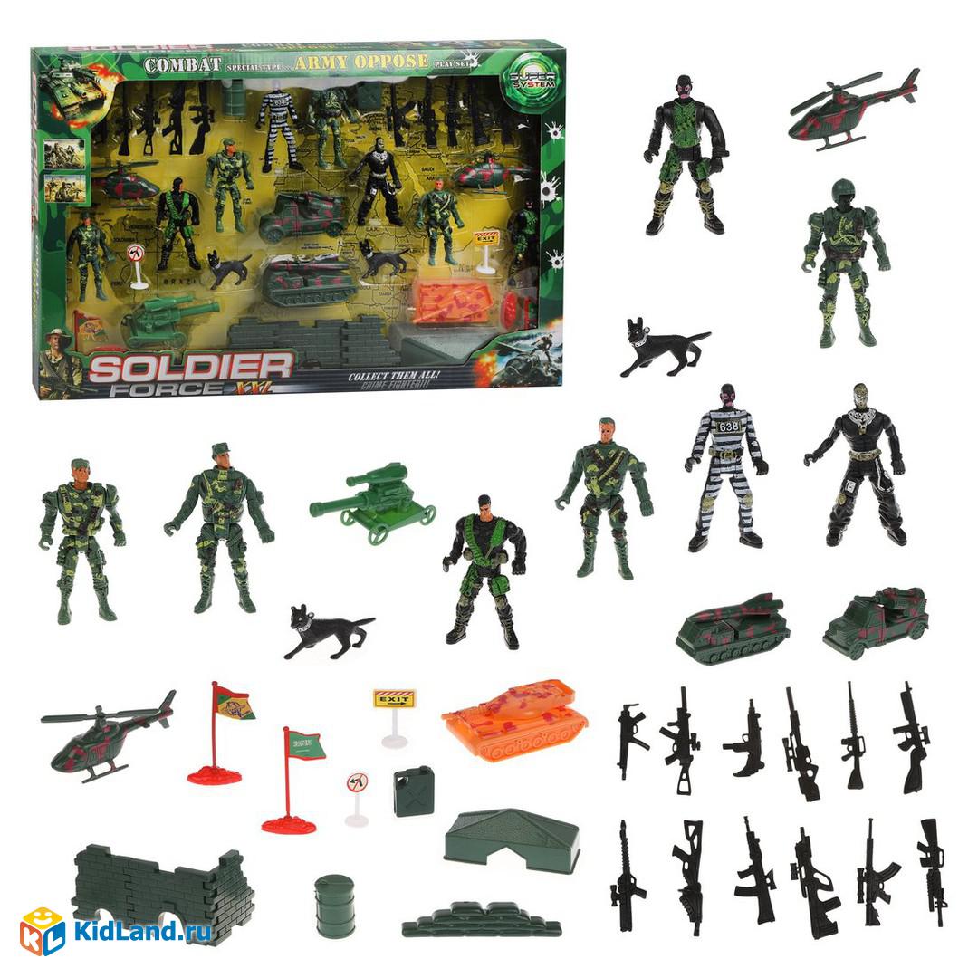 Игровой набор Армия, фигурки 10 шт., техника 6 шт., аксессуары, кор.