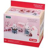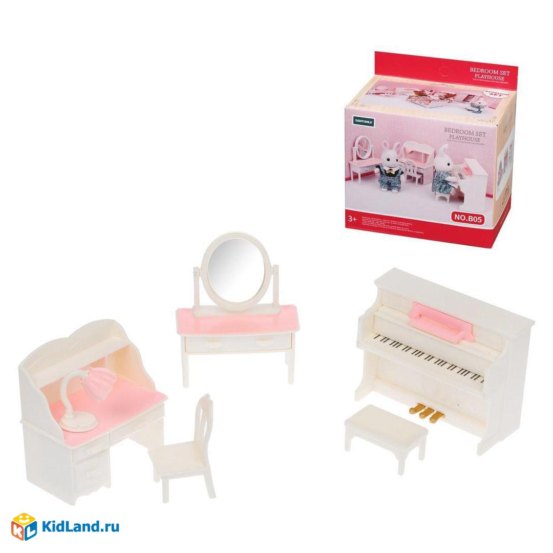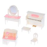 Игровой набор «Гостиная» включает несколько предметов: пианино, письменный стол с ящичками, туалетный столик, стул, табурет и лампу. Этими игрушечные аксессуарами можно очень уютно обставить комнатку в кукольном доме!
