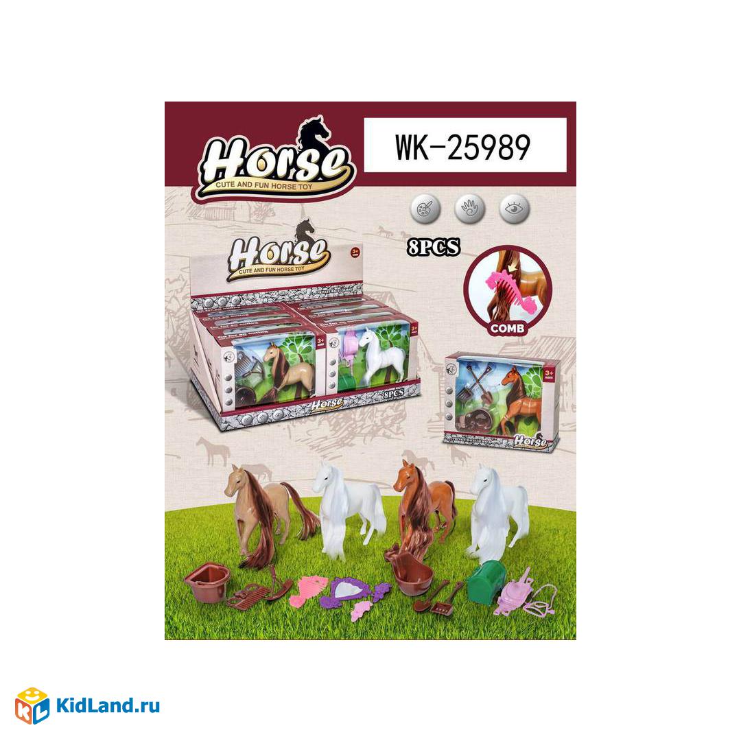 Игровой набор Junfa Лошадка с предметами ухода 4 цвета