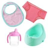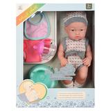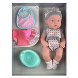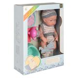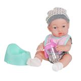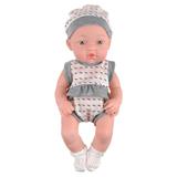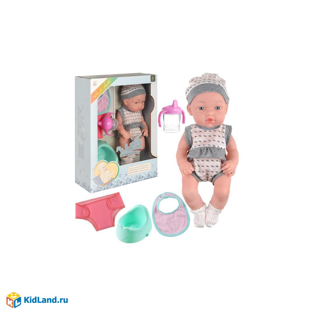 Игровой набор Junfa Пупс 35 см в бежево-серой одежде с горшком, поильником, нагрудником и трусиками