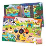 В игровом наборе «На ферме В лесу» ребенок найдет говорящего робота со сканером штрихкодов и 2 пазла из 24 и 35 элементов. Перед началом игры ребенку нужно самостоятельно собрать 2 игровых поля из пазлов. Затем можно отправиться на прогулку по ферме и лесу вместе с роботом Робби! Для этого нужно просто ставить робота на штрихкоды возле животных – он будет говорить и петь. После обучения можно проверить знания – робот Робби предложит множество умных вопросов, оригинальных загадок, веселых заданий. Как играть с Робби – будет интуитивно понятно даже малышу! Во время игры у робота мигает лампочка. У робота 18 режимов работы («Голоса зверят», «Песенки и стихи», «Чей голос?», «Угадайка», «Домики и и детки», «Песенки-загадки» и др.). Набор рассчитан на несколько часов веселых занятий – в нем 50 животных, более 500 игр, вопросов и ответов.
