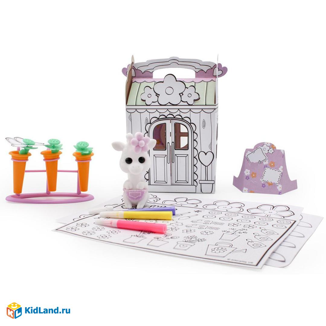 Фуззики – это милые питомцы, которых можно раскрашивать как угодно! Фломастеры легко смываются водой, и игрушки можно раскрашивать вновь и вновь, создавая каждый день новые образы для своего питомца. Игровой набор состоит из сборного домика «Цветочный магазин» и флокированной фигурки жирафа. У питомца есть все, что необходимо для создания прекрасных цветочных композиций: подставка, цветы, повязка и фартук! В наборе есть смывающиеся водой фломастеры, чтобы украсить и персонализировать флокированного малыша, множество аксессуаров и стикеров, каждый из которых можно задекорировать на свой вкус и цвет. С наборами Фуззи-стрит можно создать целую оживленную улицу! Игровые наборы «Улица Фуззи – Пекарня» и «Улица Фуззи – Бутик» идеально дополнят эту улицу! Фуззики! Целый мир воображения и игр!