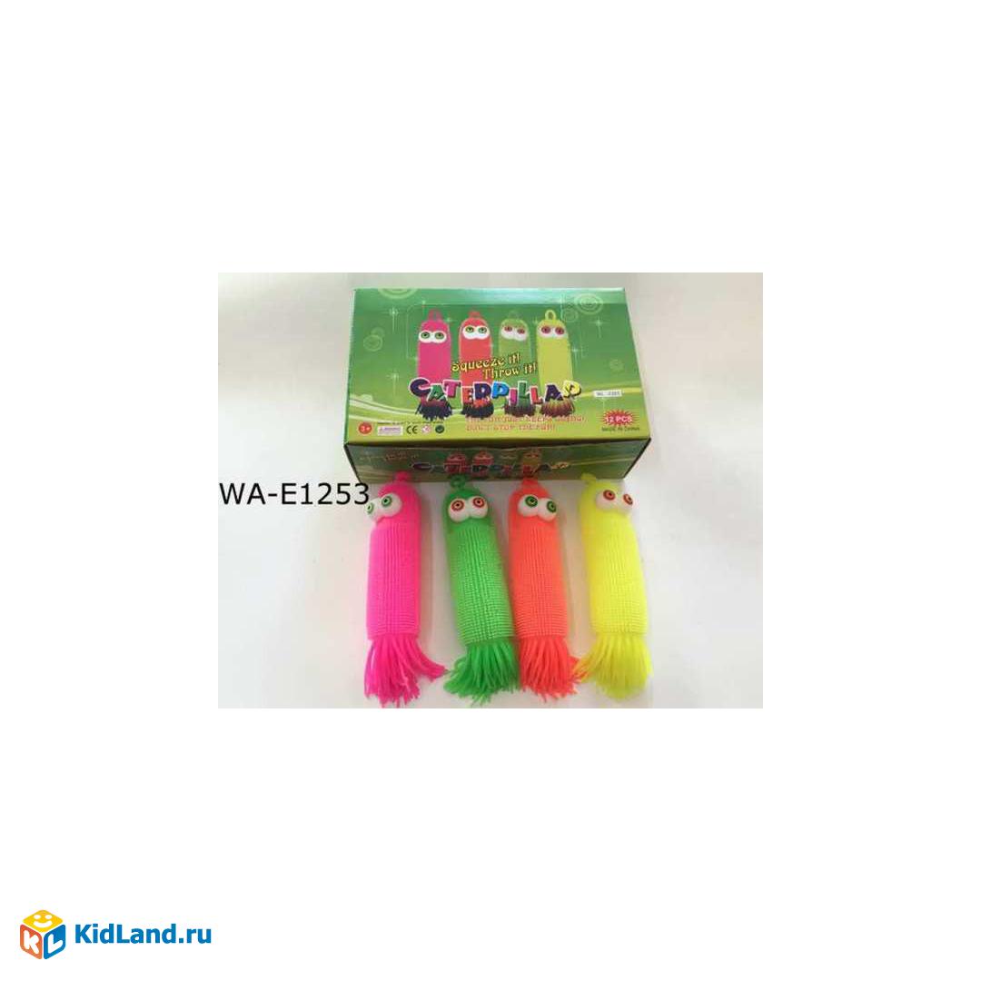 Игрушка-антистресс Junfa Мялка Гусеница, световые эффекты, в дисплее 12 шт