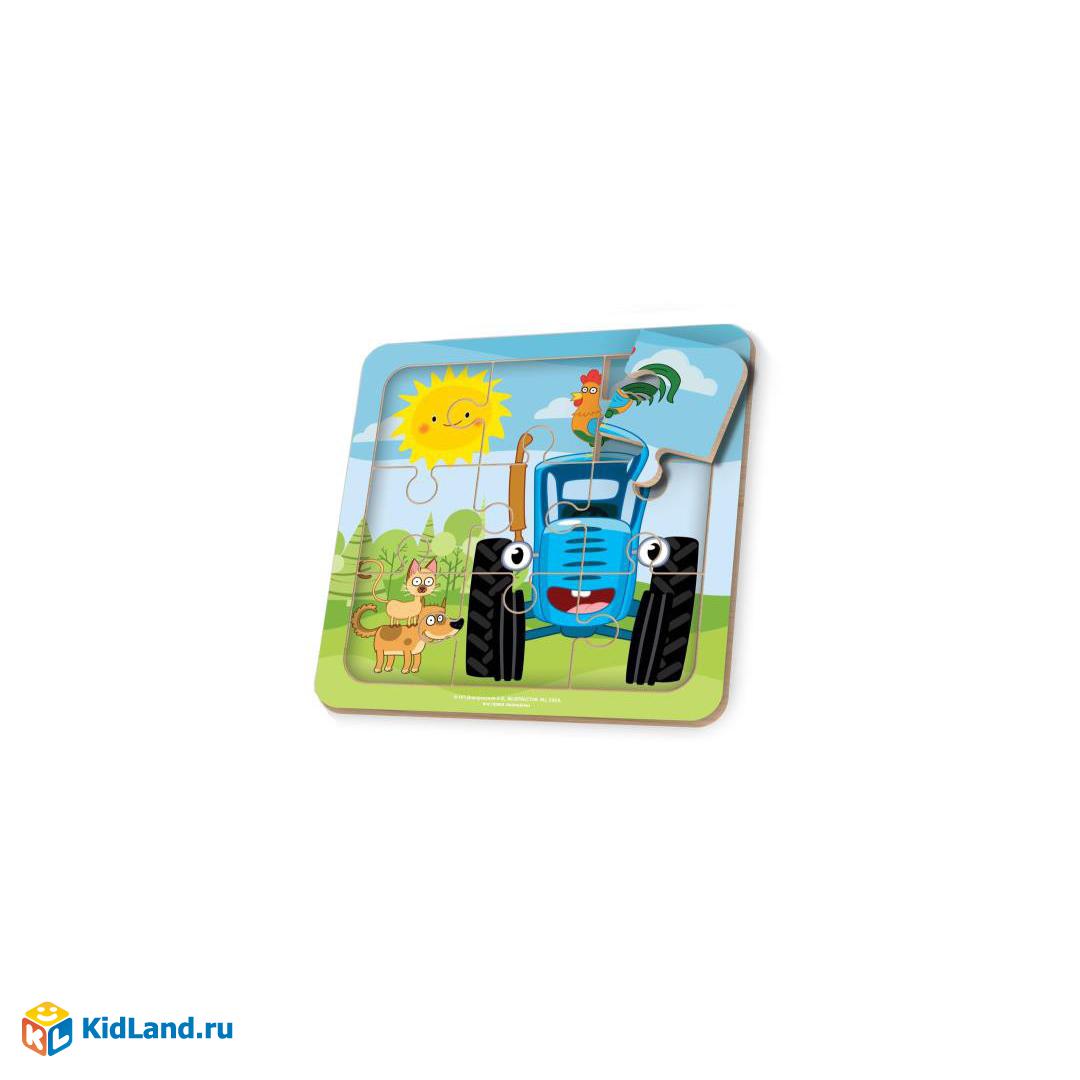 Игрушка деревянная пазл 15*15 см. СИНИЙ ТРАКТОР терм. пакет Буратино