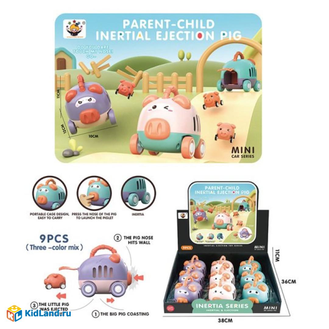 Веселый яркий поросенок с инерционным механизмом станет приятным сюрпризом для ребенка! Из большой свинки можно пускать маленькую, стоит только нажать на пятачок игрушки и отпустить.