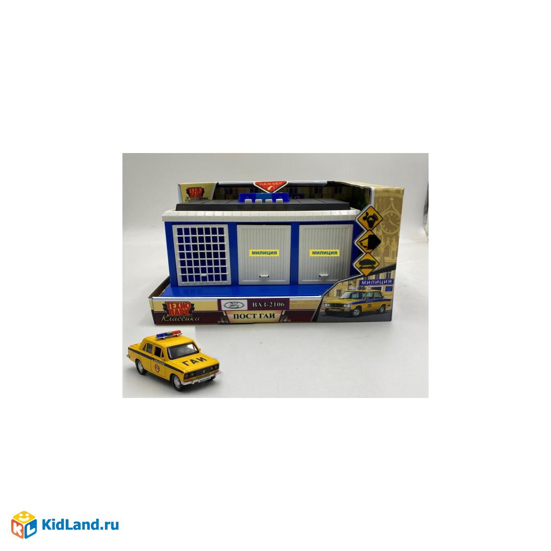 Игрушка пластик свет-звук ПОСТ ГАИ длин 22 см, ворота, ВАЗ-2106, синий, кор. Технопарк
