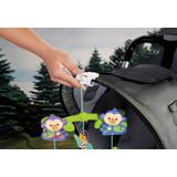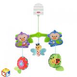 Подвеска-мобиль с добрыми и красочными игрушками легко крепится к навесам большинства колясок. Когда ребенок будет тянуться и бить по игрушкам-насекомым и цветку, его действия приведут к развитию навыков общей моторики. Потешьте слух малыша веселым звоном, а его зрение - игрой с двумя забавными обезьянками, которые качаются туда-сюда под действием движения коляски!