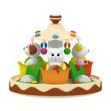 Нажав на ручку юлы малыш запускает целое представление - игрушечная карусель начинает вращаться под приятную музыку и мерцание огоньков.