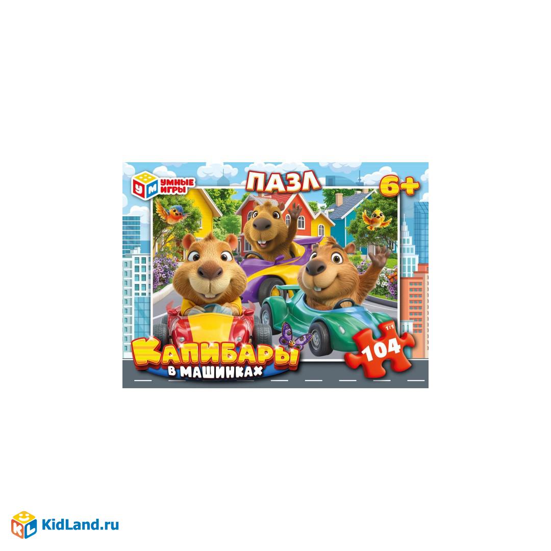 Капибары в машинках. Пазлы классические. Пазл 104 детали.190х141х35 мм. Умные игры