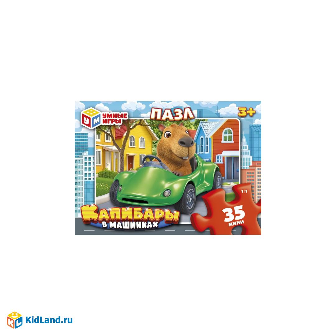 Капибары в машинках. Пазлы в коробке 35 деталей. 90х65х25 мм. Умные игры в уп.32шт