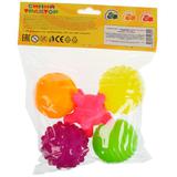 Разноцветные рельефные шары с разным типом поверхности обладают массажным эффектом и развивают тактильные ощущения у малыша. Благодаря выступающим элементам, игрушки можно «попробовать на зуб», помассировать дёсны, изучить их текстуру пальчиками. Шары изготовлены из безопасного и качественного материала, идеально подойдут для купания и превратят его в весёлую игру.
