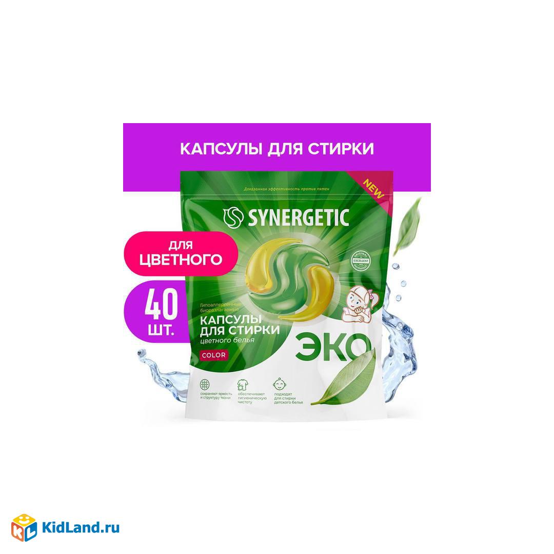 Капсулы для стирки SYNERGETIC COLOR концентрированные, гипоаллергенные 40шт
