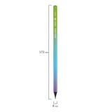 Каждый карандаш имеет индивидуальный штрих-код. Легко затачивается, максимально устойчив к повреждениям. Изготовлен из черного дерева высокого качества. Имеет круглое сечение. Карандаш длиной 172 мм обладает средней степенью твердости – HB. Корпус покрыт цветной печатью ассорти в 5 дизайнах. Поставляется заточенным в пластиковой тубе по 72 штуки.