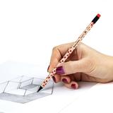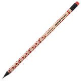 Каждый карандаш имеет индивидуальный штрих-код. Легко затачивается, максимально устойчив к повреждениям. Изготовлен из черного дерева высокого качества. Имеет круглое сечение и оснащен ластиком. Карандаш длиной 190 мм обладает средней степенью твердости – HB. Корпус покрыт цветной печатью ассорти в 4 дизайнах. Поставляется заточенным в пластиковой тубе по 72 штуки.