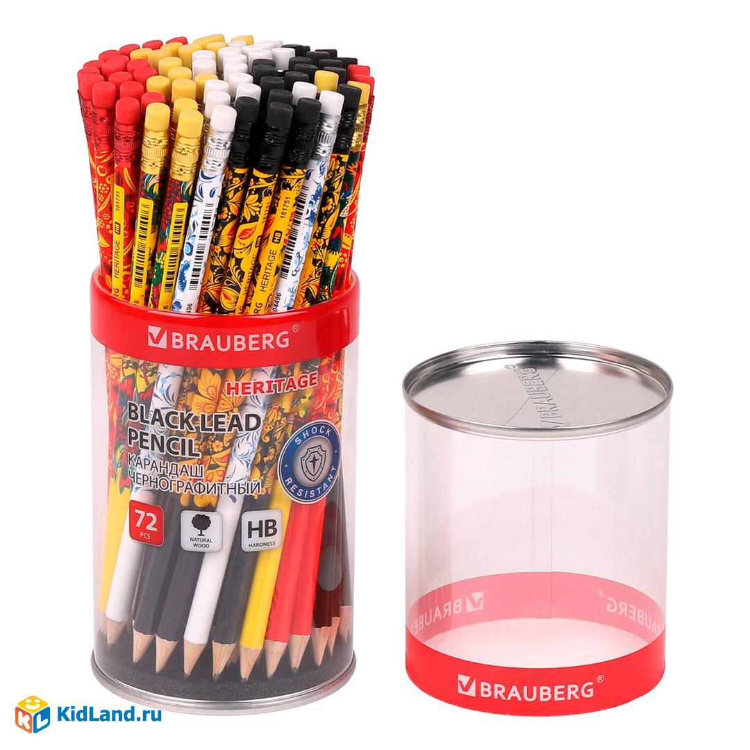 Карандаш чернографитный BRAUBERG "HERITAGE", 1 шт, HB, с ластиком, корпус ассорти, 181751
