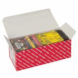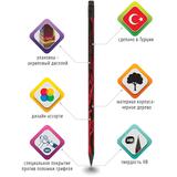Каждый карандаш имеет индивидуальный штрих-код. Легко затачивается, максимально устойчив к повреждениям. Изготовлен из чёрного дерева высокого качества, оснащен ластиком. Имеет круглое сечение. Карандаш длиной 190 мм обладает средней степенью твердости – HB. Цвет корпуса - ассорти. Поставляется заточенным в пластиковом стакане по 72 штуки.