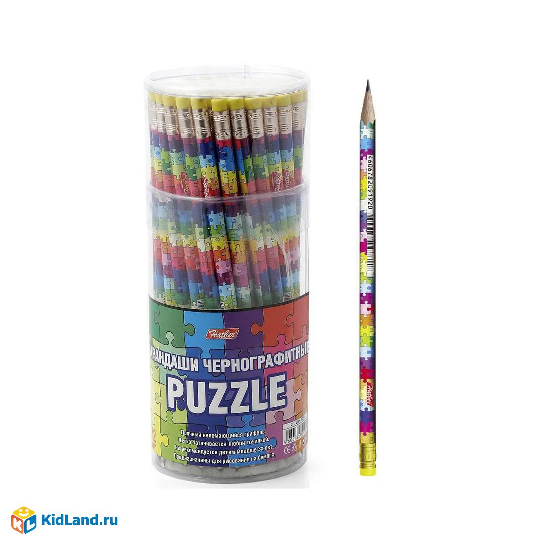Карандаш чернографитный Hatber круглый корпус 72шт Puzzle "HB" с ластиком
