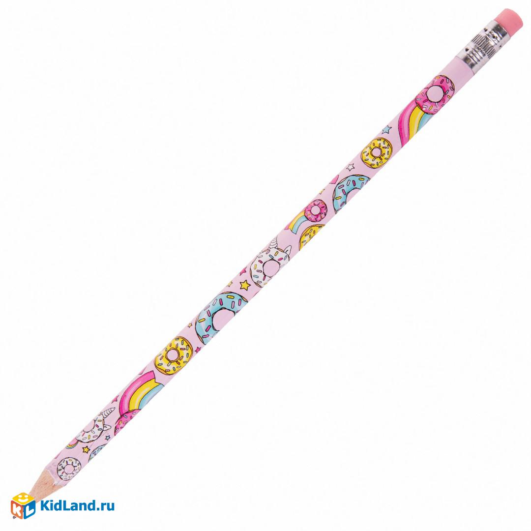 Карандаш чернографитный ЮНЛАНДИЯ "СЛАДКИЕ ИСТОРИИ", 1 шт, HB, с ластиком, корпус с печатью, 181750