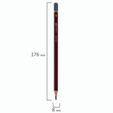 Карандаш легко затачивается, максимально устойчив к повреждениям. Изготовлен из дерева высокого качества. Имеет шестигранное сечение. Карандаш длиной 176 мм обладает степенью твердости – 6B. Цвет корпуса - бордовый. Диаметр грифеля- 3 мм. Поставляется заточенным.