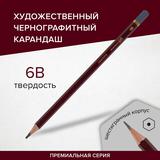 Карандаш чернографитный художественный 6B, 1 шт, BRAUBERG ART "PREMIERE", ВЫСШЕЕ КАЧЕСТВО, 181890