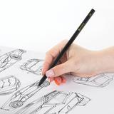 Карандаши изготовлены из дерева высокого качества. Имеют шестигранное сечение. Карандаши длиной 176 мм легко точатся и не крошатся. Набор состоит из карандашей различных степеней твердости – 2H - 1 штука, Н - 1 штука, НВ - 2 штуки, В - 1 штука и 2B - 1 штука, 3B - 2 штуки, 4B - 2 штуки. Диаметр грифеля - 2,05 мм. Выполнены в черном цвете. Поставляются заточенными.