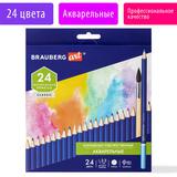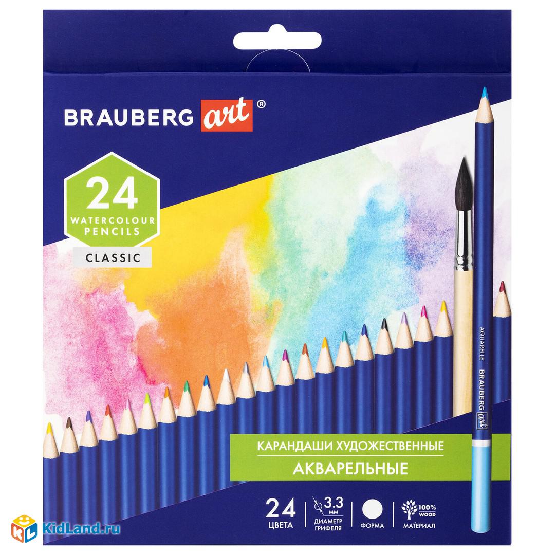 Карандаши художественные цветные акварельные BRAUBERG ART CLASSIC, 24 цвета, грифель 3,3 мм, 181530