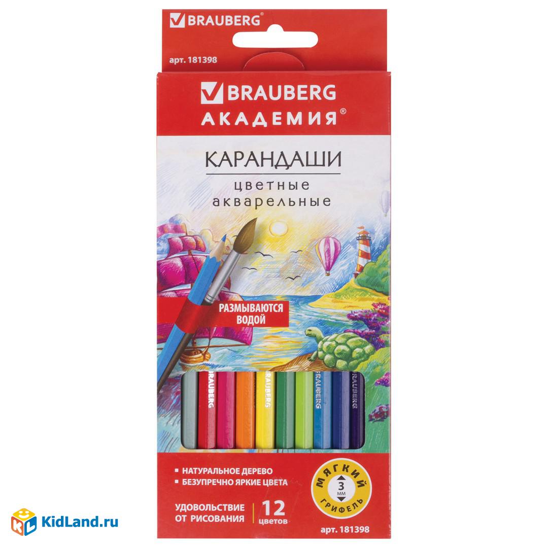 Карандаши цветные акварельные BRAUBERG "АКАДЕМИЯ", 12 цветов, шестигранные, высокое качество, 181398