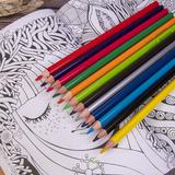 Набор состоит из 12 цветов: черный, синий, голубой, салатовый, зеленый, желтый, оранжевый, розовый, красный, серый, фиолетовый, коричневый. Трехгранная форма сечения корпуса позволяет не скатываться карандашу с поверхности стола во время занятий рисованием. Они изготовлены из древесины ценных пород и имеют лакированный корпус. Высокосортная древесина и качество исполнения гарантируют легкую заточку. Грифель диаметром 3,3 мм обладает повышенной прочностью. Все карандаши заточены и поставляются в картонной упаковке с европодвесом.