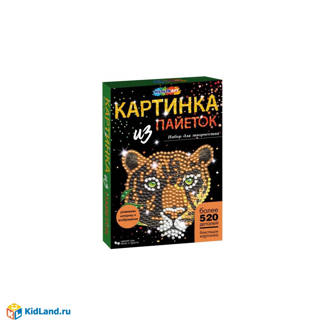 Набор для творчества - картина из пайеток с гвоздиками «Леопард» ТМ «Мульти Арт» - отличный подарок для маленького художника.