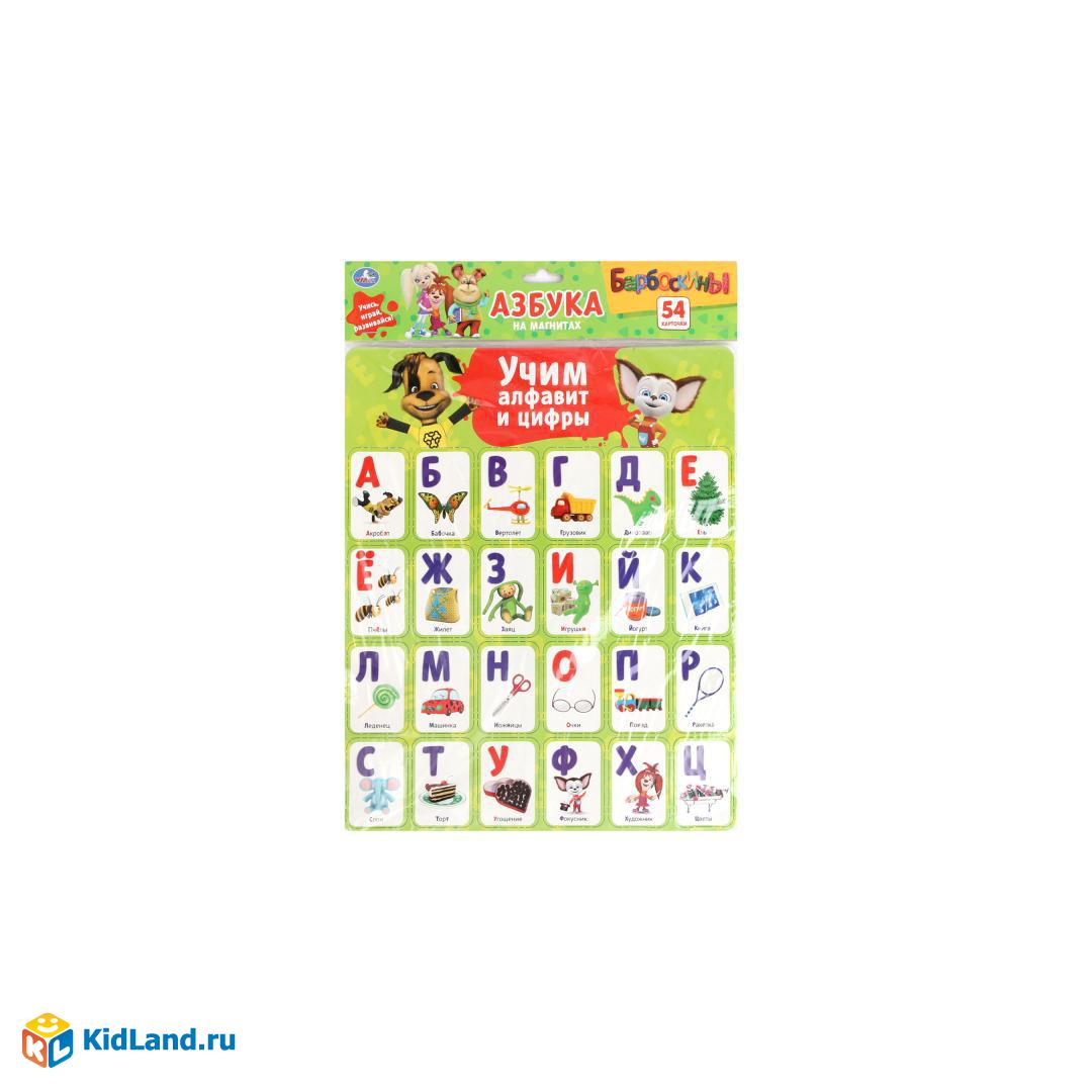 КАРТОЧКИ НА МАГНИТАХ "УМКА" БАРБОСКИНЫ. УЧИМ АЛФАВИТ И ЦИФРЫ (54 КАРТОЧКИ) 30*42*0,5СМ