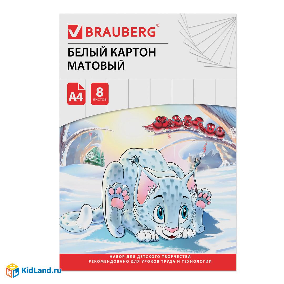 Картон белый А4 немелованный, 8 листов, в папке, BRAUBERG, 200х290мм, Барсик 1, 129902