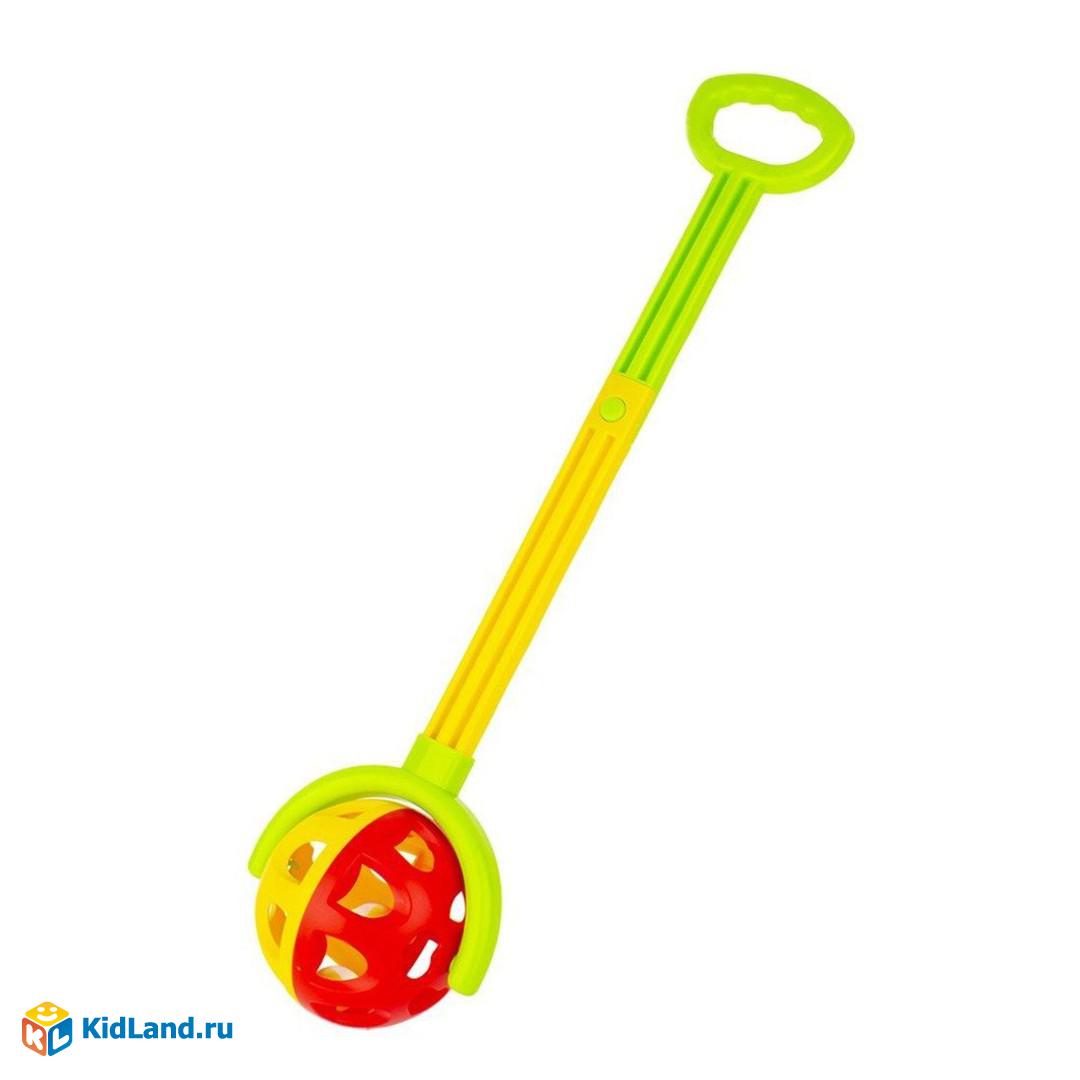 Каталка Шар станет любимой игрушкой вашего малыша. Каталка изготовлена в виде шара с ручкой, внутри которого расположены маленькие цветные шарики, при движении они перекатываются и создают звуковой эффект.