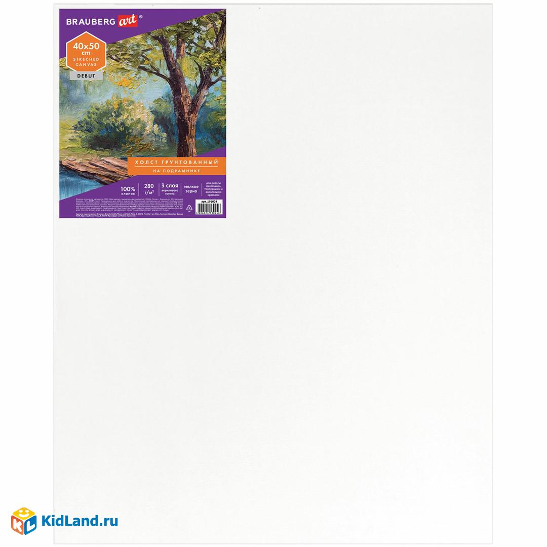 Холст на подрамнике BRAUBERG ART DEBUT, 40х50см, грунтованный, 100% хлопок, мелкое зерно, 191024