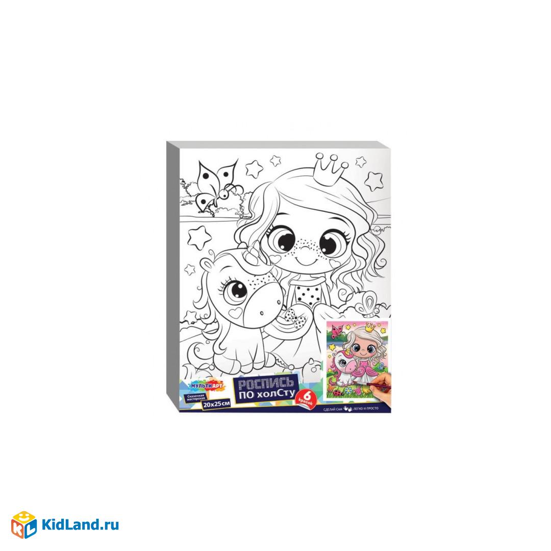Набор для творчества - роспись по холсту «Принцесса и пони» из серии «Сказочная мастерская» ТМ «Мульти Арт» станет отличным подарком для юных художников: