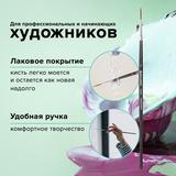 Короткая ручка из древесины покрыта лаком, что защищает ее от воздействия красок и влаги.