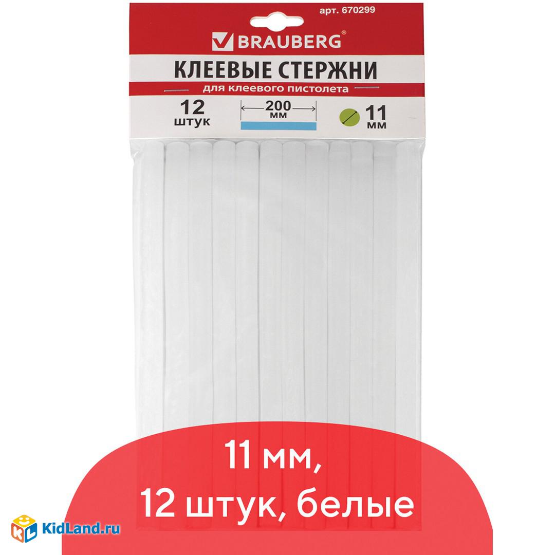 Клеевые стержни, диаметр 11 мм, длина 200 мм, белые, комплект 12 штук, BRAUBERG, европодвес, 670299